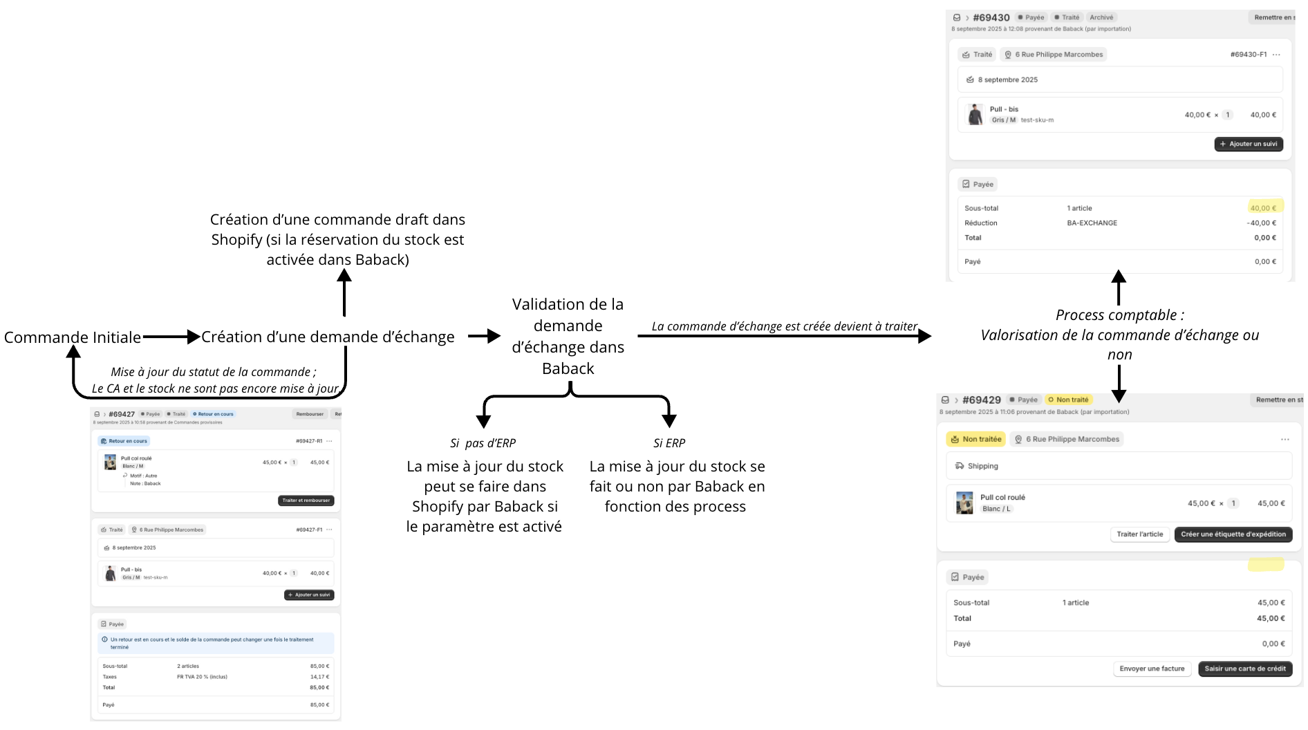 Valorisation comptable : les commandes d’échange sont automatiquement valorisées à 0 € dans Shopify.